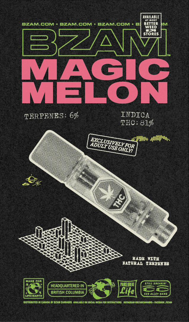 BZAM™ is an analog cannabis brand. Inspired by the underground press and ‘zine movements it uses a handmade aesthetic as a metaphor for meticulous cannabis curation. During my time there I was responsible for bringing content to life for both website and social media formats. They are created for the modern world but still faithful to older analog methods of animation, these motion graphics drop the framerate and let their imperfections shine!